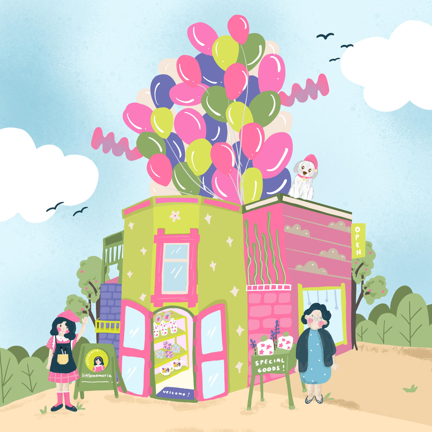 littlememoria is an illustrated memorable trinkets, zine & goods shop (originally by Herfa Memory) from Indonesia. It's pink, playful, cute and childlike.littlememoria brings Memo—the tilted head yet too sweet girl as its IP design. But sometimes, Memo is not alone. She brings Grandma & her cutie pie Popo cheer our day!